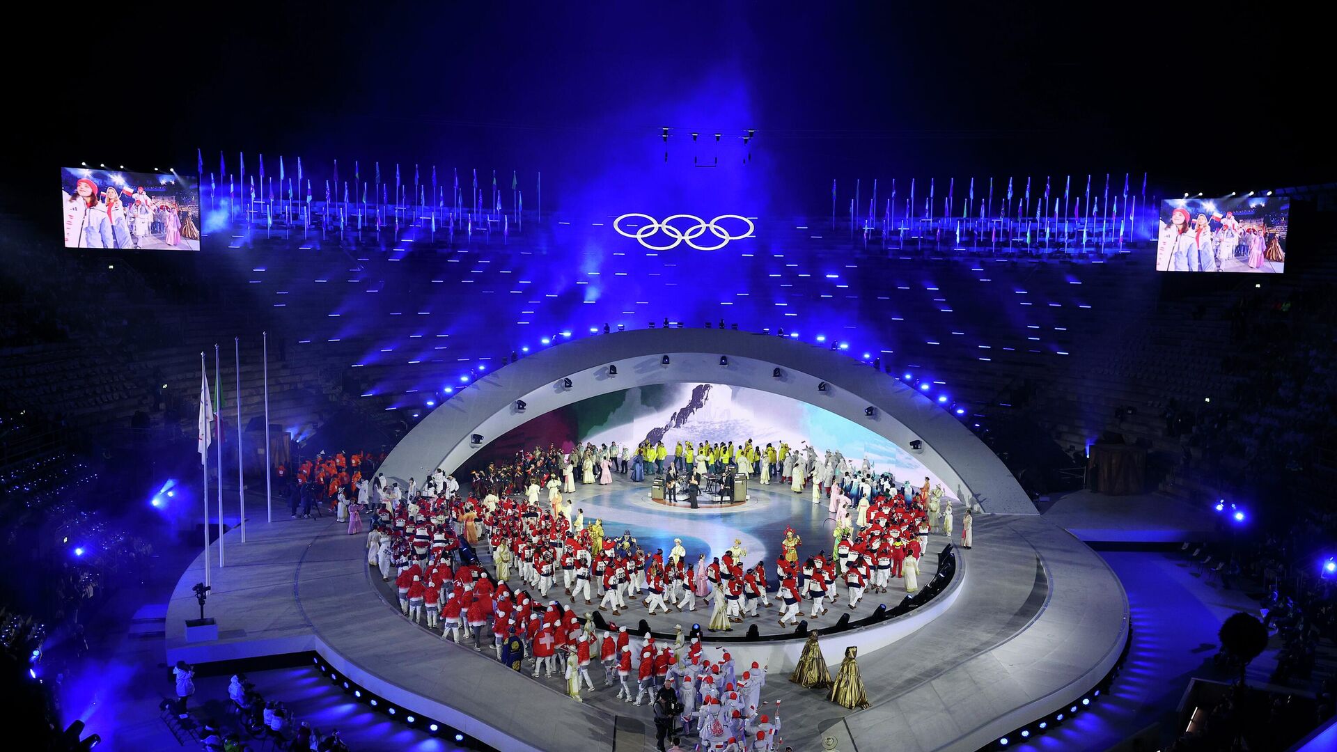Церемония закрытия состоялась в амфитеатре Арена-ди-Верона, возведённом в I веке нашей эры. В этот момент были также погашены олимпийские огни в Милане и Кортина-д'Ампеццо.